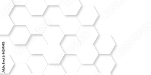© MdLothfor, Fototapeta premium Abstract 3d white hexagon realistic mesh cell honeycomb texture. geometric white grid emboss hexagonal background. luxury white pattern.