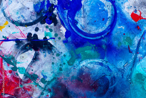 © Chaikom, Fototapeta premium Abstract, damage to walls with many colors. Style of landscape. Rough concrete surface with cracks, scratches and paint stains. Great background or texture.