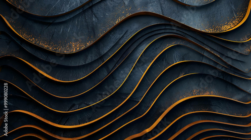© Elnare, Naklejka premium Abstract dark background with curved lines.