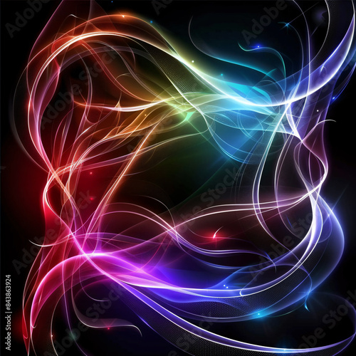 © Rochilah, Obraz premium abstract dark background with flowing colouful wave