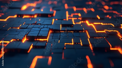 © Phichaphat, Obraz premium Abstract Dark Background with Orange Glowing Lines