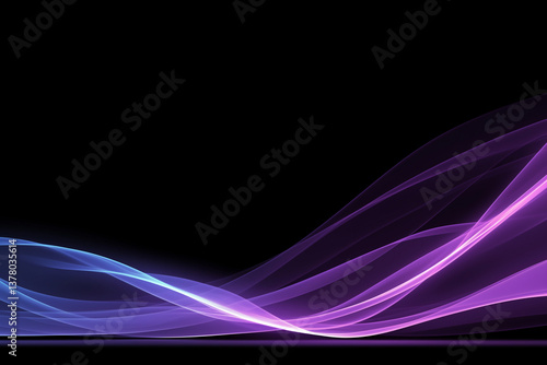 © Original St, Naklejka premium Abstract dark background with purple and blue glowing wave on black