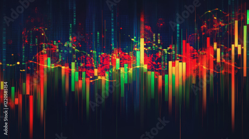 © Teeraphon, Obraz premium Abstract dark blue background with Colorful charts and graphs with statistics to innovative analyze business potential and forecast future development of companies growth.