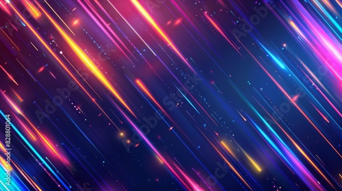 © Bijac, Obraz premium abstract dark blue background with colorful neon light streaks and beams futuristic technology seamless pattern