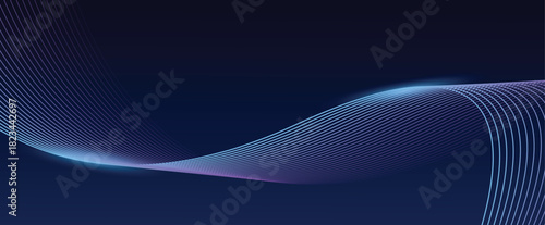 © Eopar, Naklejka premium Abstract dark blue background with dynamic wave lines. Futuristic technology concept.