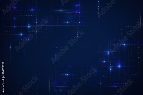 Naklejka premium Abstract dark blue background with glowing digital lines and scattered bright...