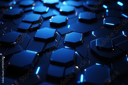 Obraz premium Abstract dark blue background with glowing hexagons