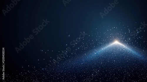Fototapeta premium Abstract dark blue background with glowing particles converging to a bright point.