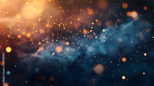 © Phichaphat, Obraz premium Abstract Dark Blue Background with Gold & Orange Bokeh