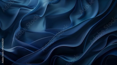 © Ailee Tian, Obraz premium Abstract dark blue background with wavy lines and smooth curves.