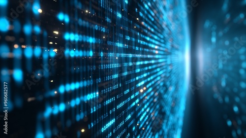 © mirifadapt, Obraz premium Abstract dark blue digital background. Big data digital code