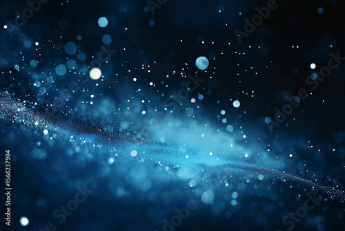 © Habib art house, Obraz premium Abstract dark blue digital background with sparkling blue light particles and areas with deep depths Particles form into
