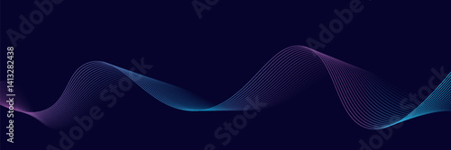 © Selamet, Naklejka premium Abstract dark blue digital future technology geometric flowing line background. Purple-navy blue-green gradient smooth wave lines web banner