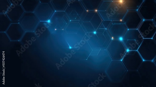 © joe, Fototapeta premium Abstract Dark Blue Glowing Hexagon Honeycomb Technology Background - Medical Science Vector Template with Copy Space for Digital Banners, Web Design, Social Media