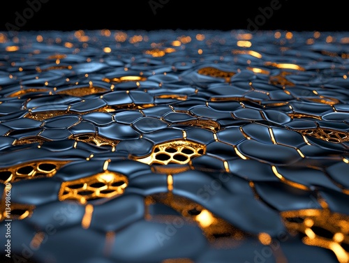 © Ai DreamscapesTH, Obraz premium Abstract Dark Blue Gold Hexagon Pattern Texture Background