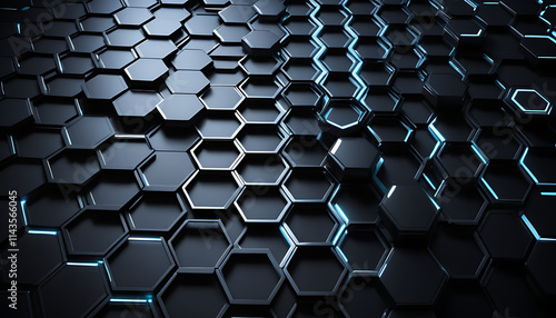 © lona, Obraz premium Abstract dark blue hexagon pattern background.