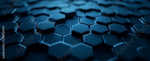 © Ikhwan, Obraz premium Abstract dark blue hexagon pattern texture background