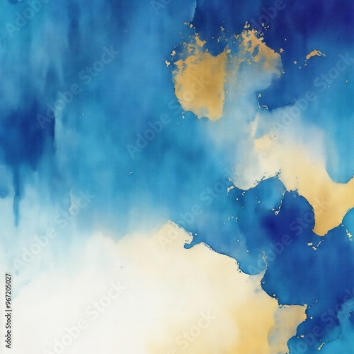 © Reazy Studio, Obraz premium Abstract Dark Blue, Teal, and Gold Watercolor Grunge Texture Background