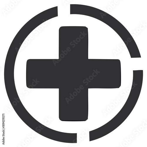 Obraz premium Abstract dark cross symbol inside a broken circle graphic illustration