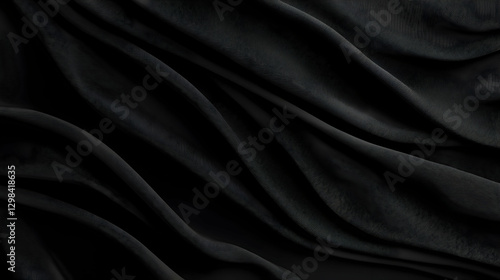 © julio, Fototapeta premium Abstract Dark Fabric Texture With Glossy Waves And Reflective Light In Black Background