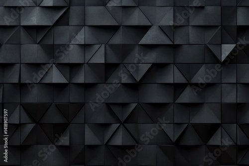 © Margarita, Obraz premium Abstract Dark Geometric Triangle Pattern Technology Background Low Poly 3D Render Minimalist Symmetrical Design