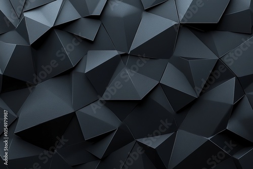 © CahPapat, Obraz premium Abstract dark gray polygonal background with 3D effect.