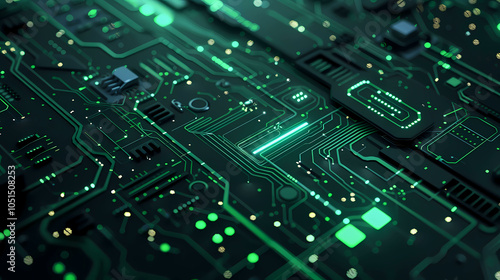 Obraz premium Abstract dark green technology microchip background illustration design.