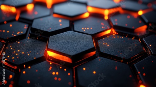 © AGUNG, Obraz premium Abstract dark hexagonal glowing texture.