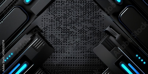 © rajagambar99, Fototapeta premium Abstract Dark Metal Frame with Blue Lights Tech Background