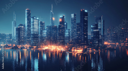 Fototapeta premium abstract dark modern futuristic city concrete building light technlogy...