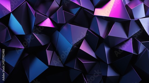 © matoya, Obraz premium Abstract dark purple and blue metallic triangular geometric background.
