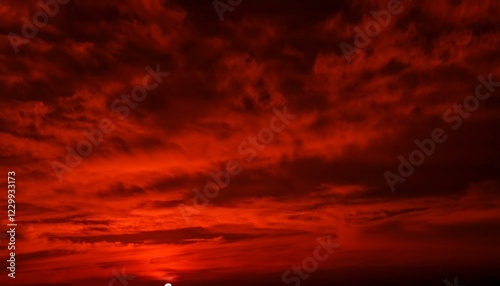 © l1gend, Obraz premium Abstract dark red background. Dramatic red sky. Red sunset with clouds. Fantastic sunset background with copy space for design. Halloween, armageddon, apocalypse, end of the world concept