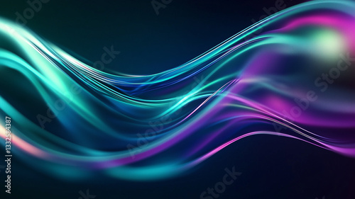© foto Art, Naklejka premium Abstract dark space iridescent fluid waves, futuristic glowing neon light streaks, digital energy motion background