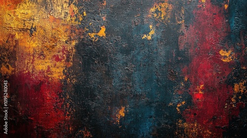 © MUMTAZ, Obraz premium Abstract Dark Textured Background: Fiery Hues and Deep Shadows