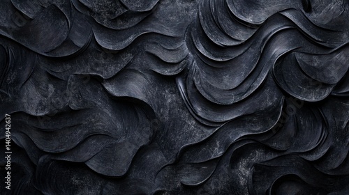 © AYESKIA, Fototapeta premium Abstract Dark Waves Texture Background - Sculpted Pattern Design