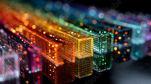 © MUHAMMAD, Obraz premium Abstract data blocks with bokeh lights