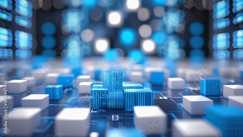 © Malik, Obraz premium Abstract Data Cube Background – Big Data Storage, Information Servers, Data Science, and Advanced Computer Algorithms Vector Illustration
