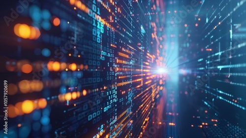 © Juan, Fototapeta premium Abstract data flow with bright coding lines