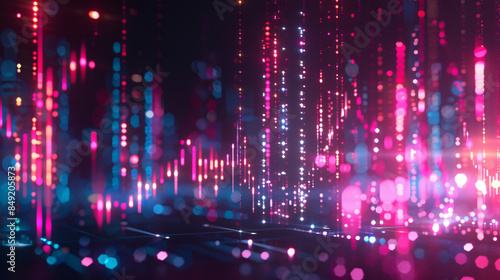 Obraz premium Abstract data flowing downwards in colorful lines and particles