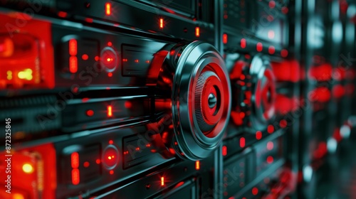Obraz premium abstract data storage system glowing red lights high-tech backup technology cybersecurity