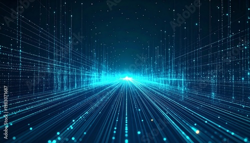 © ruangrit19, Obraz premium Abstract Data Stream Visualization with Depth and Perspective for Backgrounds and Overlays.