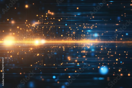 Obraz premium Abstract Data Stream Visualization with Glowing Particles and Linear Connections