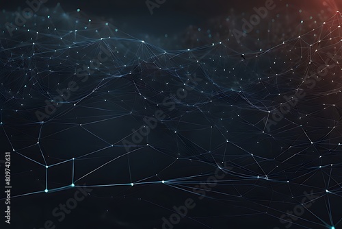 © nilawan, Obraz premium Abstract data technology background with a network grid and particles connected. Sci-fi digital technology with line