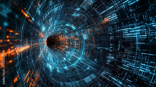 Fototapeta premium Abstract Data Tunnel Glowing with Digital Information