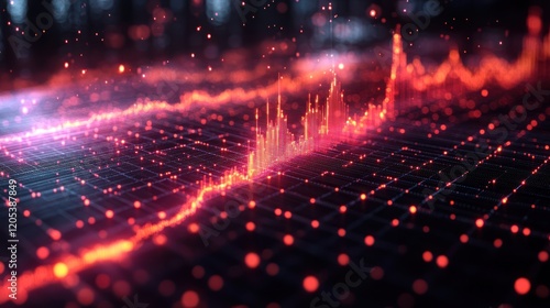 Fototapeta premium Abstract Data Visualization: Dynamic Red and Black Grid Representing Data Fluctuation and Technological Progress