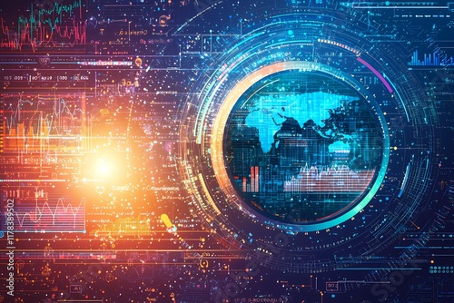 Obraz premium Abstract Data Visualization with Global Map and Technology Elements