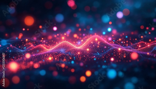 Fototapeta premium Abstract Data Visualization with Glowing Particles and Dynamic Landscape