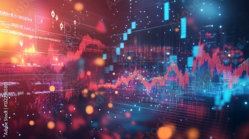 © Pure Imagination, Obraz premium Abstract Data Visualization with Red and Blue Glowing Lines