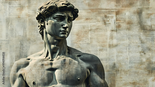 © Thiago, Fototapeta premium Abstract david statue with grunge and newspaper background. Renaissance Art. Illustration