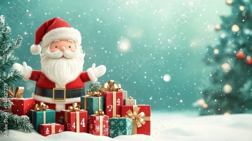 Fototapeta premium Abstract december 25 chrismas calender with santa claus and christmas gifts...